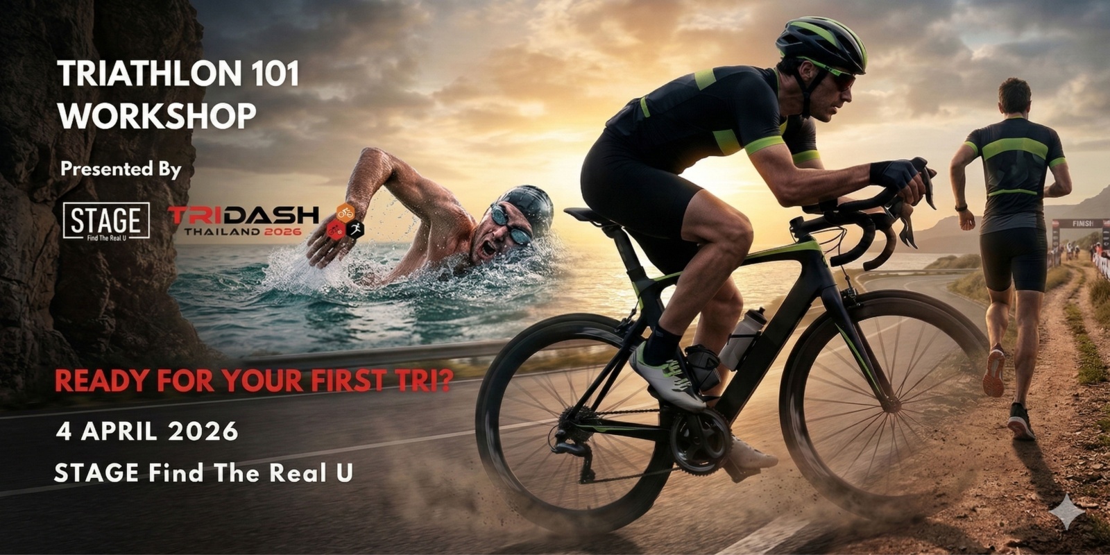 เวิร์กชอปนี้ออกแบบมาสำหรับ นักไตรกีฬาระดับ Beginner – Intermediateที่กำลังเตรียมตัวสำหรับ การแข่งขันไตรกีฬาแรกของตัวเอง หรือกำลังวางแผนลงสนาม TRIDASHภายในเวิร์กชอป ผู้เข้าร่วมจะได้เรียนรู้ทั้ง ทฤษฎีและการฝึกปฏิบัติจริง กับโค้ชผู้เชี่ยวชาญ เพื่อเข้าใจพื้นฐานสำคัญของการแข่งไตรกีฬาอย่างครบถ้วน