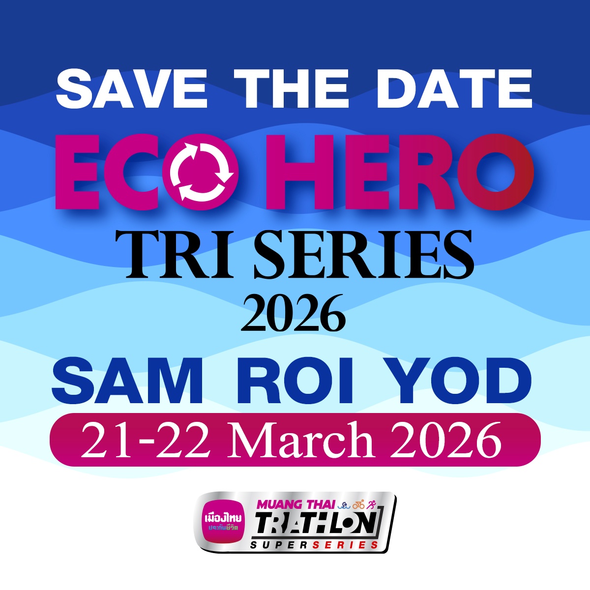 In 2026, we proudly present the “Muangthai Triathlon Eco Hero Super Series,” a new concept designed to inspire athletes to engage in environmental conservation and clean energy awareness. The series features three events throughout the year: Blue Guardian at SamRoiYod beach in March, Solar Future at Bankrut beach in July, and Green Genesis in November at a location to be announced.